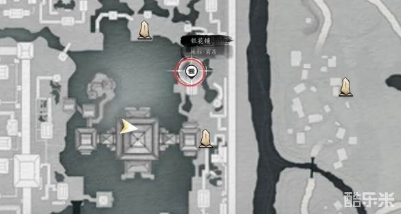 2、然后前往【银花铺】先传到下面的传送点过来后往右边走;