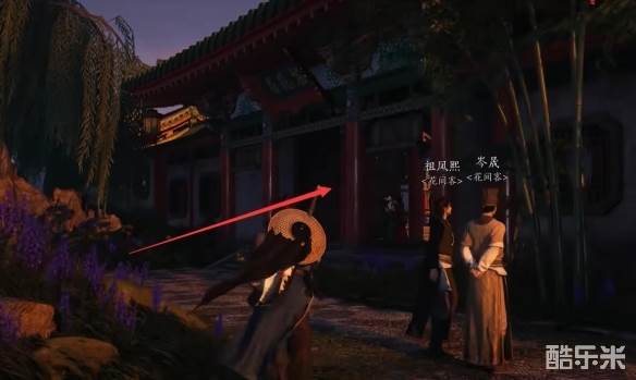 4、传到【艳湖】从后边的长廊传过去右边的房子就是【繁华居】,前往【繁华居】花树下;