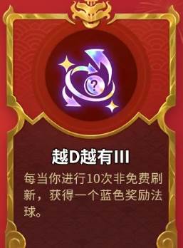5、越D越有III:每当你进行10次非免费刷新,获得一个蓝色奖励法球。