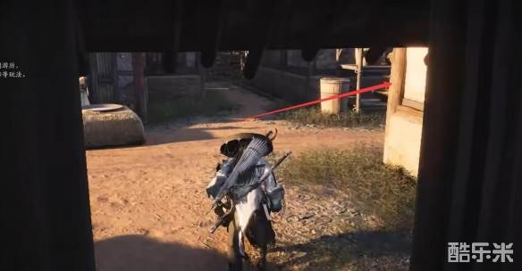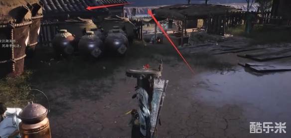 1、传到【封丘村】往左边的路走从图示房子跳上去然后跳进院子里;