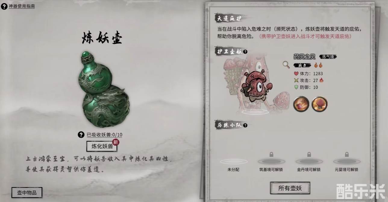 鬼谷八荒能化形的壶妖是什么?如若玩家想要走化形的流派,则必须在先天至宝当中直接选取炼妖壶这一个神器,并且在后续通过炼妖壶收取其它的妖物,下面和酷乐米小编一起来看看吧