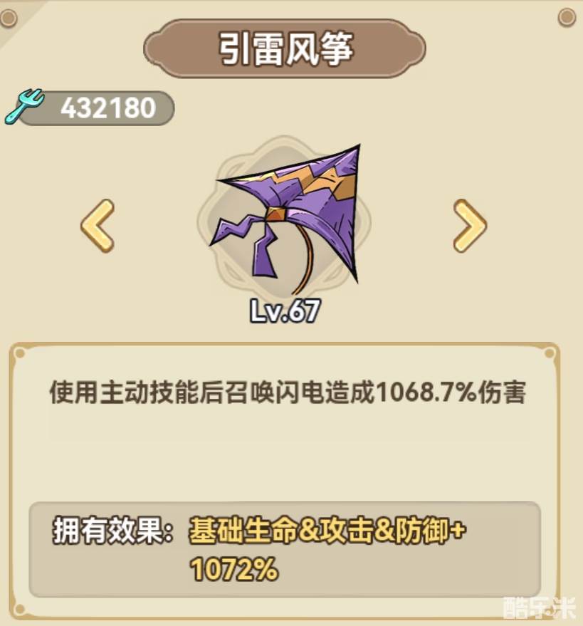 化石遗物推荐选择引雷风筝,能进一步提升法师整体技能伤害,帮助己方快速推图。