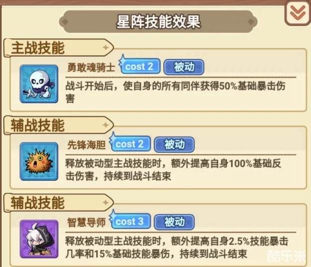 3、我们先来看主战技能——勇敢魂骑士,cost的右边有一个蓝色的【被动】,这就意味这个主战技能的类型是【被动】型。
