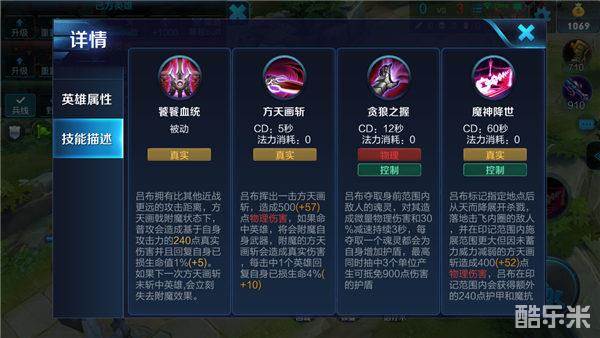 被动技能赋予了吕布较大的攻击范围和吸血能力,这使得吕布在与多名敌方英雄对峙时并不一昧地处于劣势并且拥有以少敌多的能力。