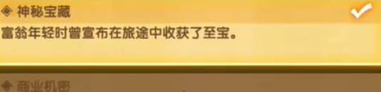 线索1:神秘宝藏:富翁年轻时曾宣布在旅途中收获了至宝。