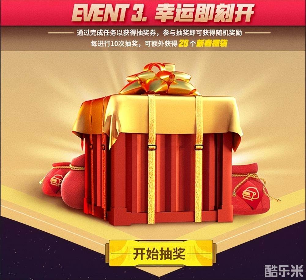 活动3:幸运即刻开:使用抽奖券即可获得随机奖励,每进行10次抽奖,还有额外新春福袋奖励!