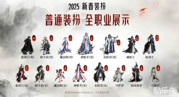 墨染丹青是2025新春装扮,很多玩家想知道墨染丹青外观长什么样,本次的装扮每个职业都有五种颜色款式可以选择,其中鬼剑士男和女格斗家有额外的一套黑色至尊装扮,下面和酷乐米小编一起来看看吧