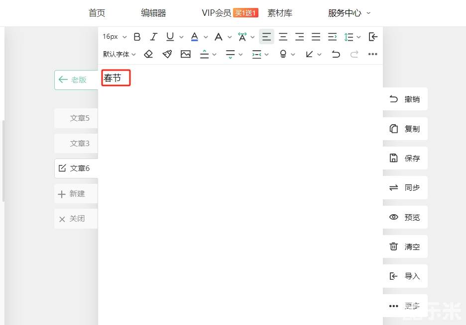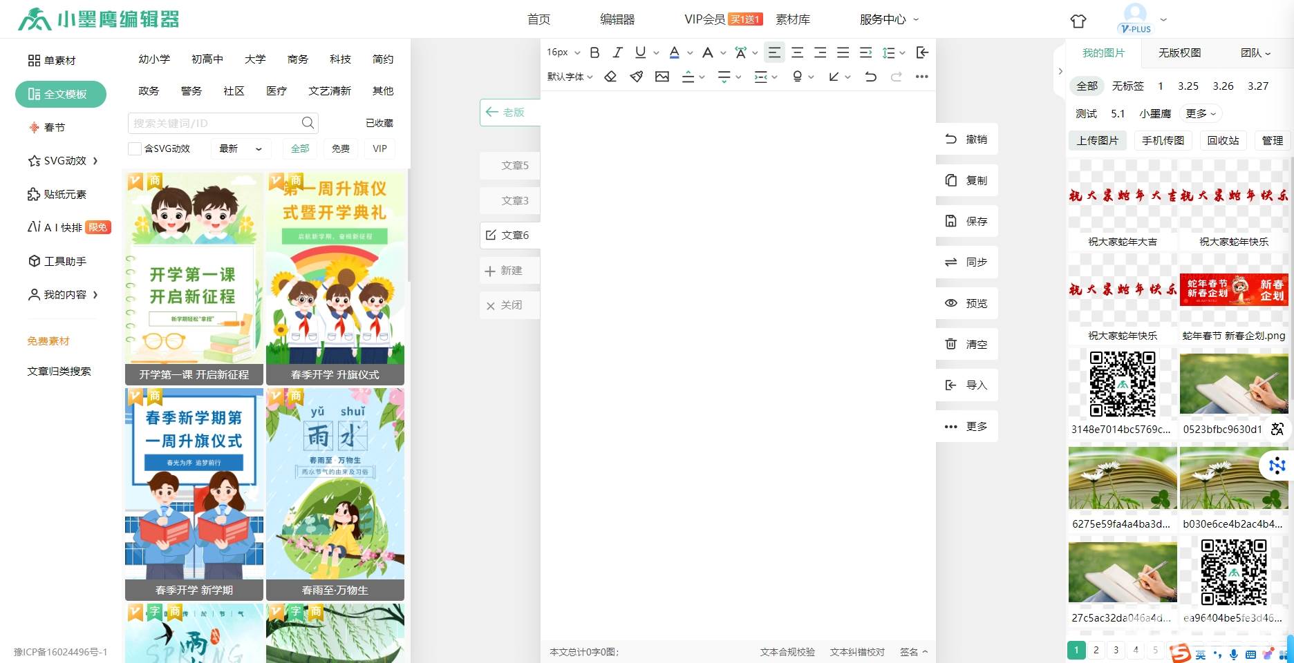 操作步骤十分简单,首先打开小墨鹰编辑器,在编辑区输入本次文章的主题,比如:春节