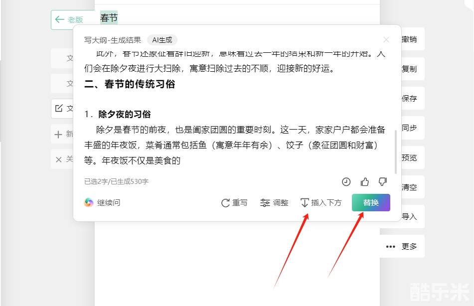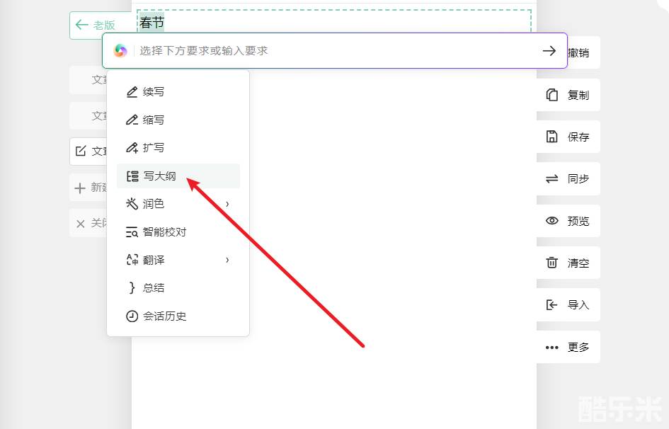 然后选中文字后,点击 “AI 帮我改” 中的 “写大纲” ,AI便会快速撰写