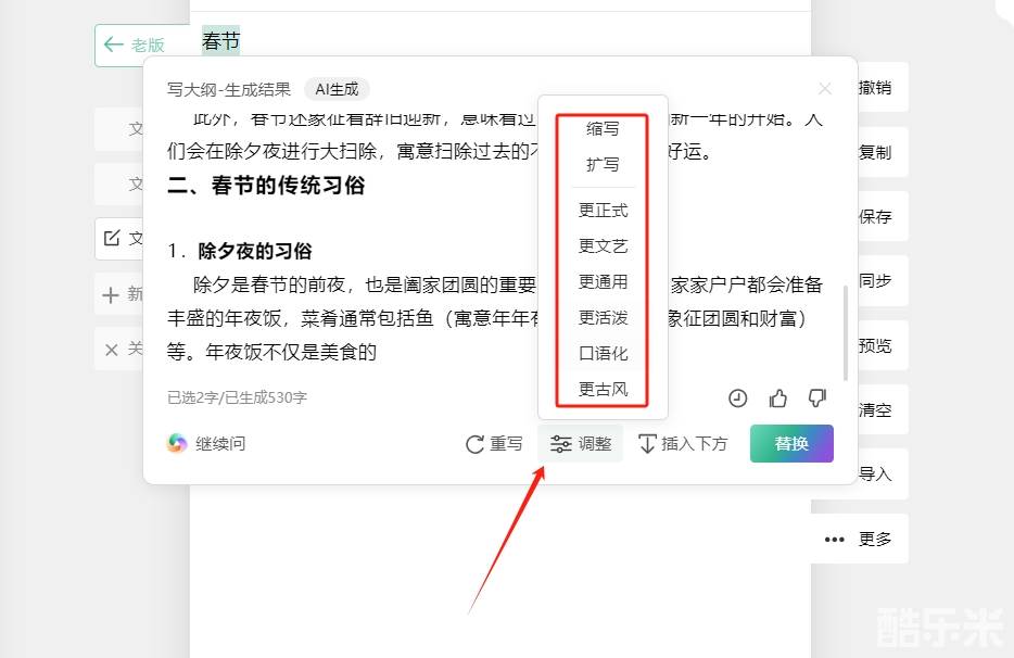 “调整”语句功能具备强大的文本优化能力,能够为大家精准润色各类语句。借助这一功能,可有效提升文本质量,满足不同场景下的表达需求。