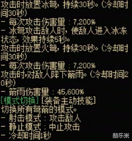攻击时召唤两个固定炮台与一场箭雨,箭雨为常规特效伤害,两个炮台驻场且不可移动。但是攻击范围很远且持续30秒冷却30秒能够实现全程驻场。