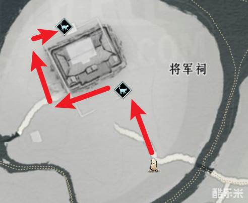 竹林旧居附近有1个可收集,位置与路线图如下。