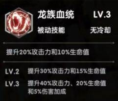 被动技能:龙族血统提升20%攻击力和10%生命值
