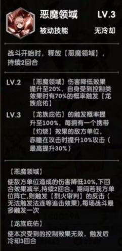 被动技能:恶魔领域战斗开始时,释放【恶魔领域】,持续两回合