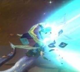 1、普通攻击:扔出一颗水晶宝石,命中时一开始是金色的亮光。