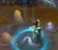 2、一技能:范围圈内侧除了剪纸花纹外,还增加了水晶质感,两条蛇向中心游动,中心的水晶剪纸花一点点开放。