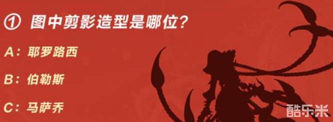此题需要玩家根据剪影的造型特征来判断是哪位角色。建议玩家仔细观察剪影的轮廓、服饰等特征进行判断。