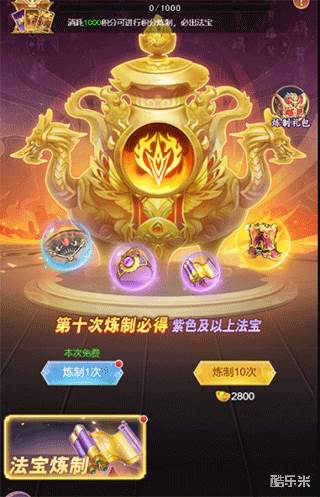 玩家可以在召唤界面进行召唤,每次召唤都有概率获得法宝。首次十连抽更是必定获得一个法宝!