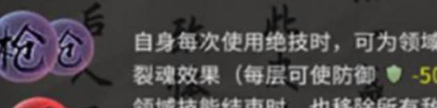 在枪领域当中,玩家如果使用该技能是2.5秒内的所有敌人将会受到伤害,而敌人下一次受到伤害的时候就会被暴击。玩家自己使用绝技的时候将会给敌人造成猎魂的效果,绝技施加结束的时候,敌人身上的裂痕效果将会消失。