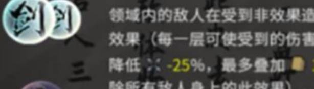 在剑领域当中,如果玩家使用了该技能,将会给敌人造成撕裂的效果。如果敌人受到了非效果而产生的伤害,这时候将会形成溃痕效果。玩家如果继续使用该技能的话,这个时候敌人的伤害将会提升,技能射程将会降低,而该领域的技能结束之后,施加在敌人身上的这个效果也就会随之消失。