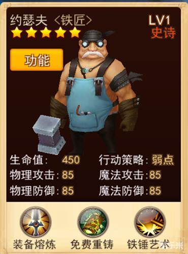 《艾斯战纪2》佣兵图鉴—五星铁匠