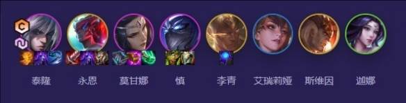 泰隆、永恩、莫甘娜、慎、李青、艾瑞莉娅、斯维因、迦娜