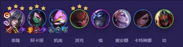 阿卡丽、慎、劫、泰隆、凯南、派克、黛安娜、卡特琳娜