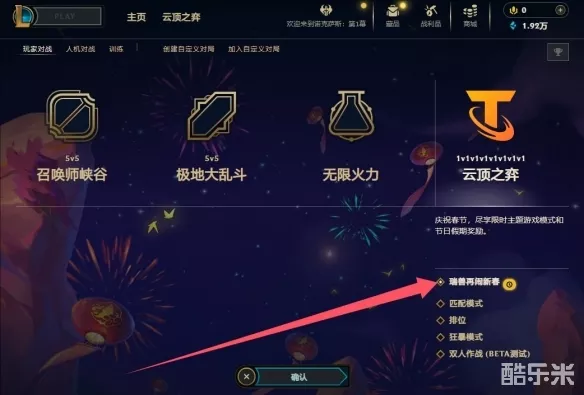 3、选择下方模式,选择云顶之弈瑞兽再闹新春模式。