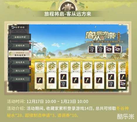 《物华弥新》旅程将启-客从远方来活动中,玩家可以通过签到的形式获取奖励,那么具体的奖励有哪些呢,下面和酷乐米小编一起来看看吧