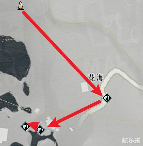 花海附近有3个可收集,位置与路线图如下(一个在梦中不羡仙传送处背后)。