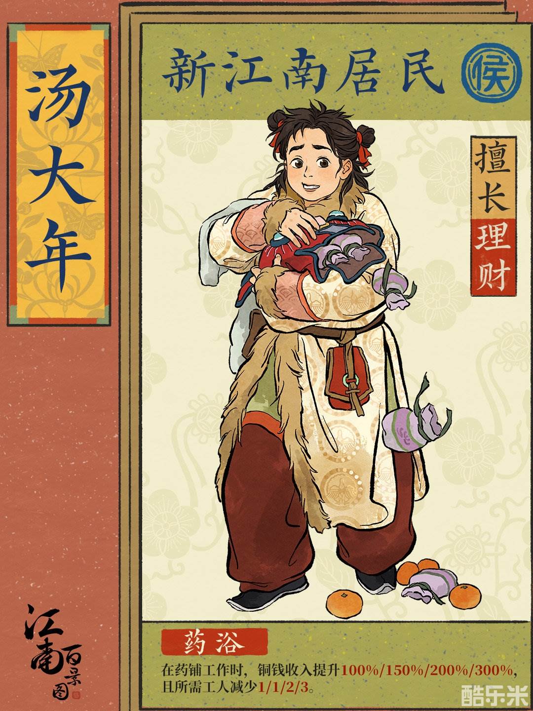 江南百景图公布了有关新居民汤大年的相关信息,大家知道新居民有怎么样的特质吗?下面酷乐米小编为大家带来的具体内容,感兴趣的玩家们千万不要错过哦!