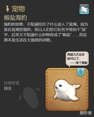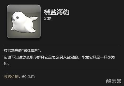 最终幻想14椒盐海豹的名字很有意思,它曾经误入了盐湖。那么椒盐海豹宠物怎么获得呢?大家可以通过开箱、鉴定、打赫罗德里克boss获得,接下来酷乐米小编给大家带来了详细的《最终幻想14:水晶世界》椒盐海豹宠物获得方法!