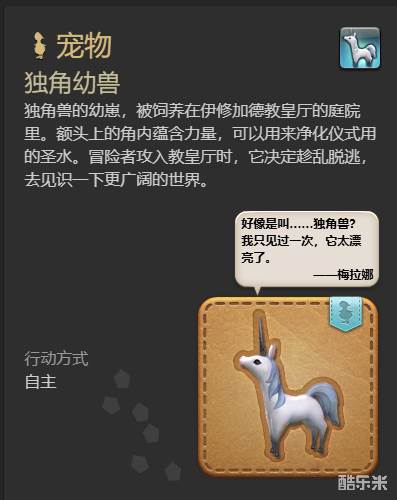 最终幻想14中有很多不同的宠物,独角幼兽就是其中之一,那么这个宠物要怎么样才能够获得呢?玩家击可以通过开箱、副本掉落或是鉴定物品的方式来获得这个宠物,接下来酷乐米小编给大家带来了详细的《最终幻想14:水晶世界》独角幼兽宠物获得方法!