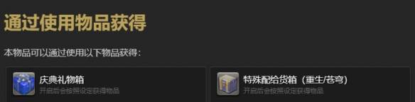 使用庆典礼物箱或是特殊配给货箱(重生/苍穹)概率获得,副本水城宝物库稀有掉落,或是通过寻宝和鉴定物品获得。