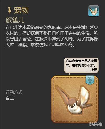 《最终幻想14》旅雀儿宠物获得方法