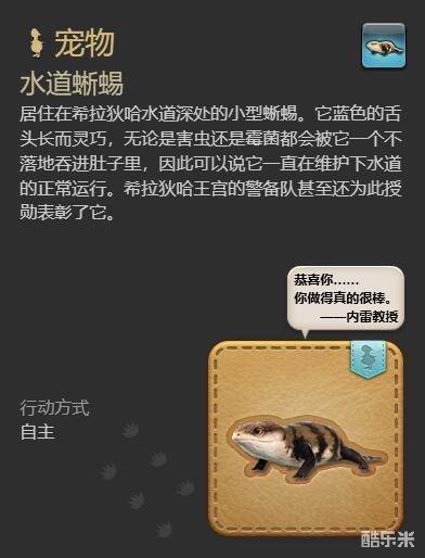 最终幻想14中有许多的宠物,很多玩家都想知水道蜥蜴怎么获得,玩家通关副本多变迷宫希拉狄哈水道就有概率获得宠物【水道蜥蜴】,接下来酷乐米小编给大家带来了详细的《最终幻想14:水晶世界》水道蜥蜴获得方法,希望这篇文章可以帮到大家!
