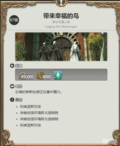 1、首先玩家的等级需要达到87级才能开启前置任务【带来幸福的鸟】;