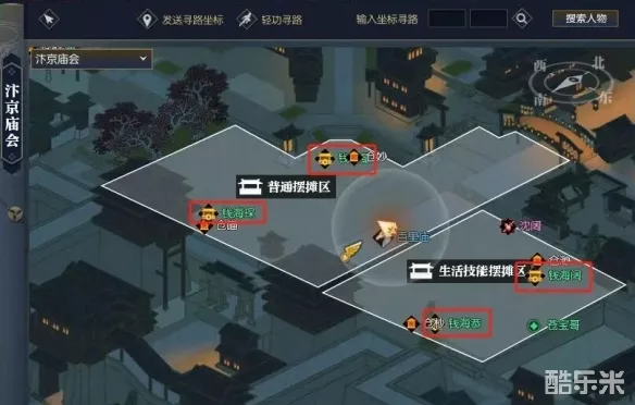 2、进来后打开地图,红圈位置处都有姓钱的NPC;