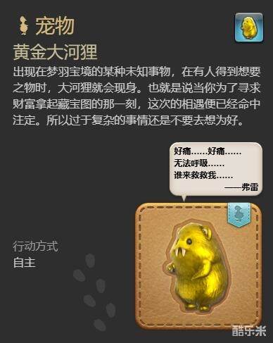 最终幻想14中有许多的宠物,很多玩家都想知道黄金大河狸怎么获得,玩家可以在宝物库【梦羽宝殿】中概率获得,下面和酷乐米小编一起来看看吧