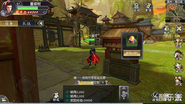 获得藏宝图后,只要在道具栏里使用藏宝图,便可以自动寻路至挖宝地点,再次使用藏宝图,便可以获得成功挖宝。