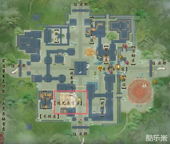 1、前往各个主城,以下以成都为例,来到技艺区;