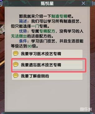 专精技能可以通过遗忘修改,很多玩家想知道怎么遗忘专精技能,前往各个主城的技艺区找到已学技艺的【专精师傅】,点【技艺专精-我要遗忘】即可,接下来酷乐米小编给大家带来了详细的《剑网3》专精技能遗忘方法介绍!