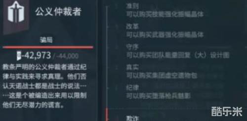 公义仲裁者的目标是解除帝国所赋予的目的束缚,建立一个可以自行生活,权力自由的新规则,主武器为终极螺钉步枪,副武器为终结螺钉双枪。