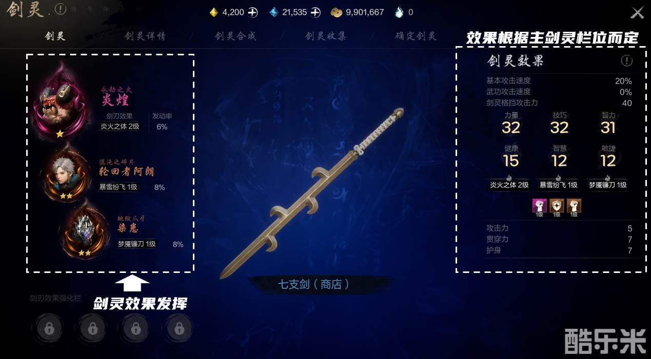 而且基本攻击速度、武功攻击速度和剑灵格挡攻击力这三个基本效果是取决于主栏位的剑灵,所以说哪个剑灵打头阵就很重要哦!