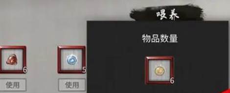4、在喂养页面,可以看到喂养的丹药,点击使用;
