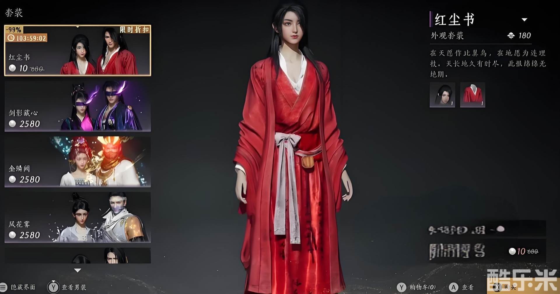 红尘书这套时装总体来说还是比较不错的一身衣服,不仅有着美好的祝愿,衣服的价格也不是特别的高,尤其是现在,这套衣服还正在特价销售,衣服总共分为发型和时装两个部分,加在一起只要10个长鸣珠就能买到手,实在是太便宜了,对于普通玩家来说,时装的价格实在是太友好了,大家基本都能承担的起,最重要的一点是,红尘书还是侠侣时装,在结婚时,完全能当喜服来穿。