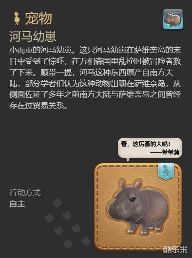 《最终幻想14》河马幼崽获得方法:
