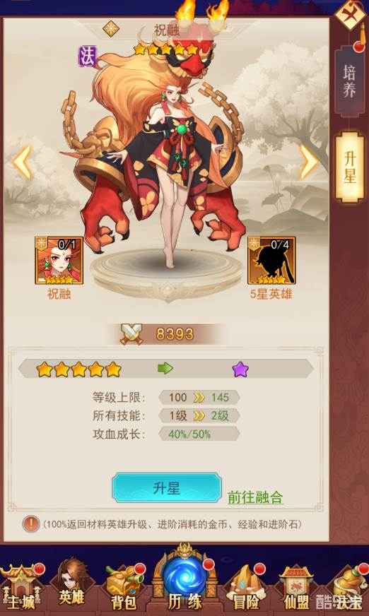 英雄升星也是一个增加英雄属性的好途径,它可提升技能的等级,英雄攻血成长的加成,只需凑齐对应的英雄卡片即可进行升星操作了。