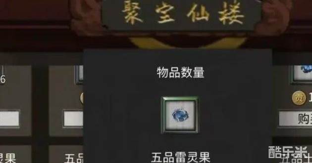 2、然后在聚宝仙楼中,下滑找到五品雷灵果进行购买;