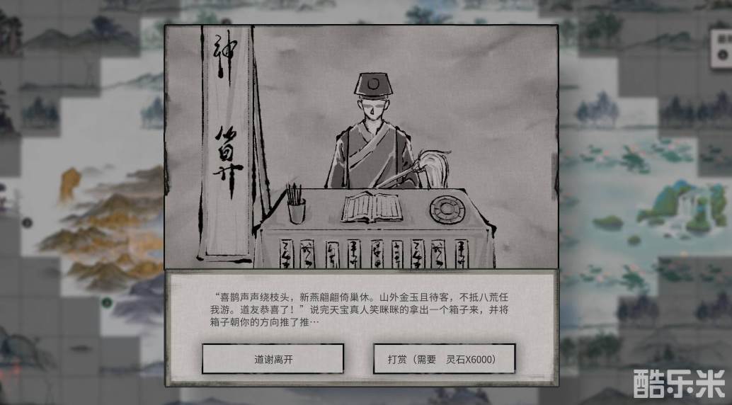 第4个奇遇灵石本是天地凿,触发方式同上,该奇遇的奖励为一定数量的修为,同样是和自身当前的境界有关。第5个奇遇瑶池琼花晶莹蕊,直接离开或者打赏对方2500灵石都是可以的,获取的奖励是一坛气运酒。第6个奇遇太岁冲克引血光,这是一个负面奇遇,在触发之后将会暂时性的减少你的灵力。